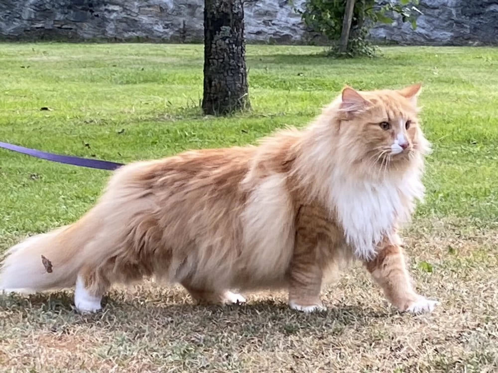 Questo magnifico felino è noto per il suo aspetto imponente e la sua folta pelliccia a strati, che lo protegge dal freddo. Il suo mantello, costituito da un sottopelo spesso e da un pelo esterno impermeabile, si adatta perfettamente all’ambiente in cui è nato. Il Norvegese delle Foreste ha anche una grande coda, folta e pelosa, che può essere eretta per dargli un aspetto ancora più maestoso.