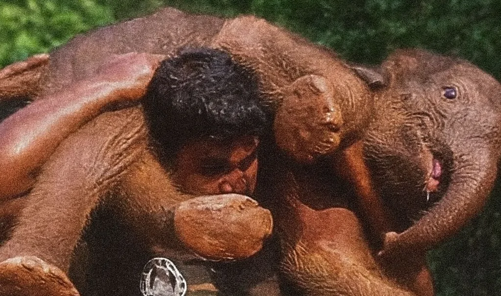 Mentre molti abitanti del villaggio restavano a distanza, intimoriti dalla presenza della madre, un uomo trovò la forza di agire. Con calma e determinazione, scelse il momento giusto, scese nella fossa e caricò il piccolo elefante – circa 100 chilogrammi di peso – sulle proprie spalle. Tremando sotto il carico enorme, avanzò passo dopo passo, fino a riportarlo finalmente in superficie.