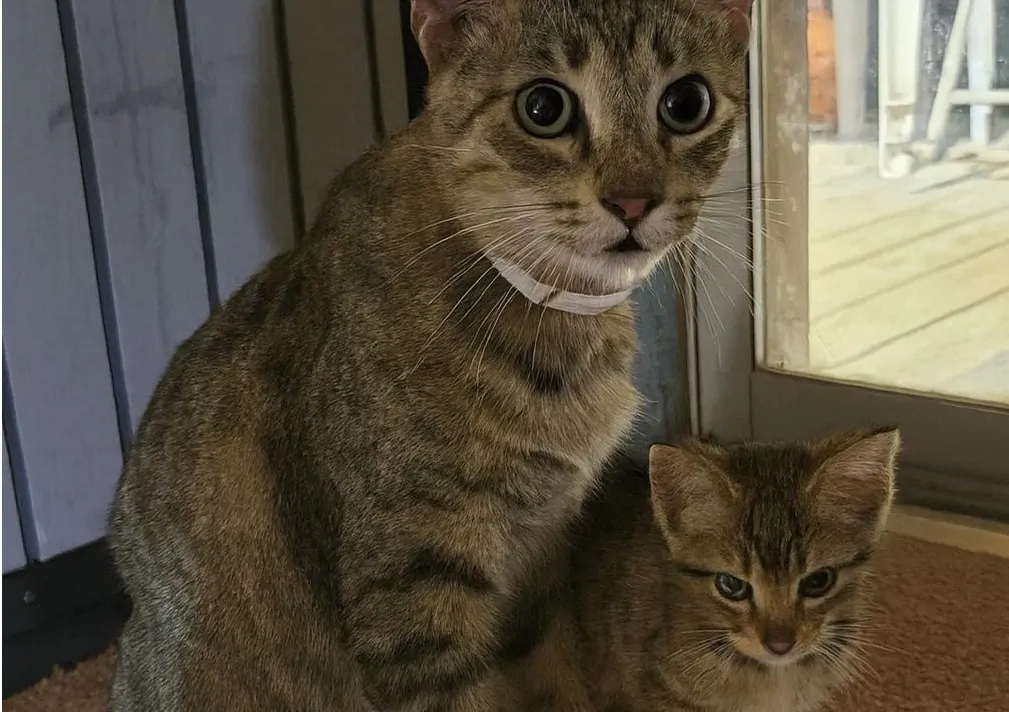 Era seduta davanti a una porta, immobile, con gli occhi grandi e spalancati. Non mostrava paura né ostilità, ma un’unica, silenziosa preghiera: protezione. Tra le zampe stringeva l’unico suo bene, il suo piccolo gattino, rannicchiato sul ventre magro. Non chiedeva nulla per sé stessa, ma tutto per lui.