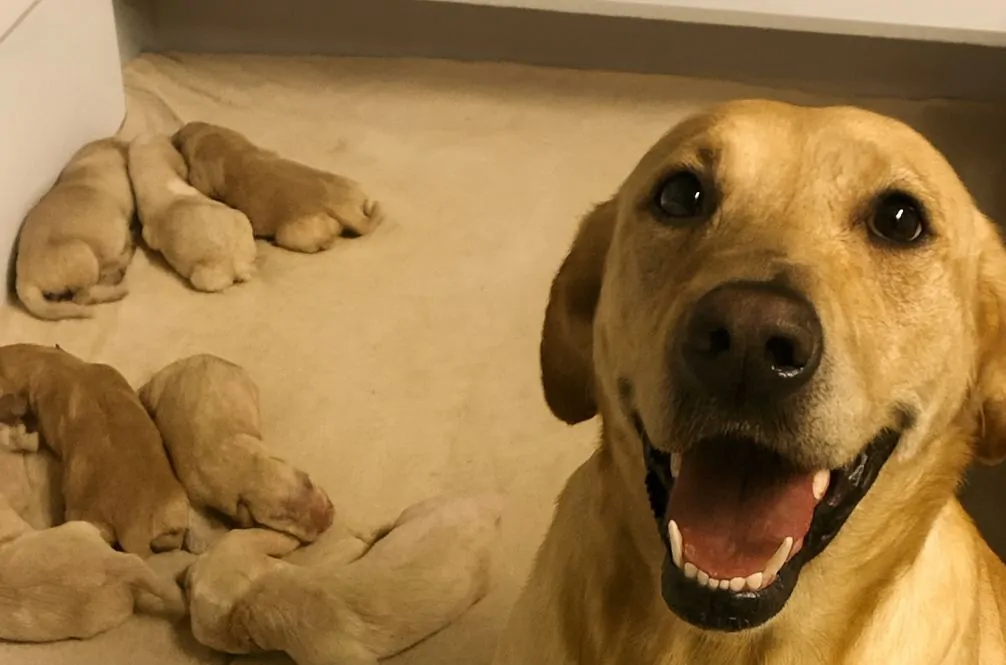 Era lì, sotto un albero, tremante e con il corpo troppo magro per la sua taglia. Accanto a sé, cinque minuscoli cuccioli appena nati, che cercava di proteggere con l’unica cosa che le era rimasta: se stessa. Non c’era paura nei suoi occhi, solo stanchezza e una silenziosa richiesta d’aiuto.