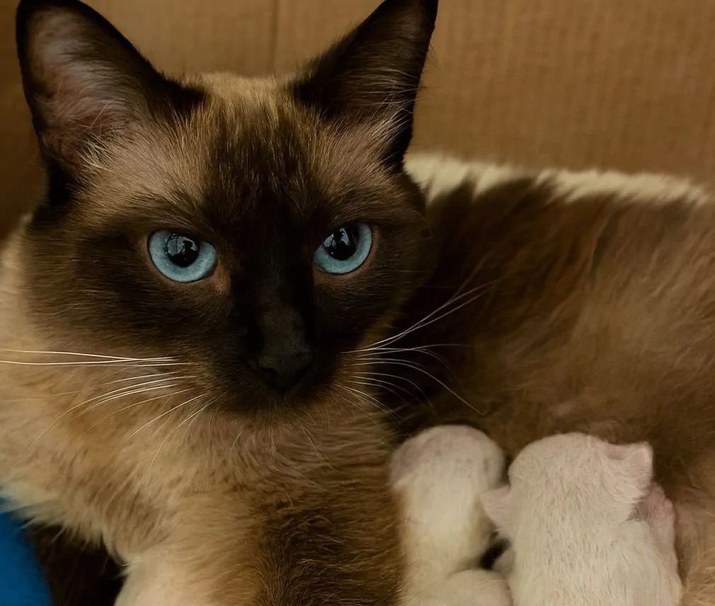 Un giorno, il destino cambiò la sua vita. In un vicolo gelido, tra scatole abbandonate, si udirono deboli miagolii: tre gattini ciechi e tremanti, soli e senza madre. Attorno a loro c’erano solo paura e freddo, la vita appesa a un filo sottilissimo. Lei li trovò e non esitò un istante: li raccolse, li strinse al petto e li scaldò con il suo corpo. Non aveva mai partorito, ma l’istinto materno esplose in un lampo. Leccò i loro musi minuscoli, calmò i pianti e trasformò la sua tristezza in forza e tenerezza.