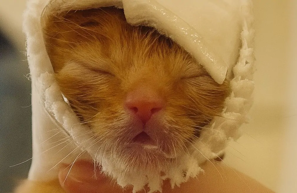 Il 20 febbraio 2022 è nato Leo, un minuscolo gattino rosso dal destino già segnato da una prova durissima. Pochi minuti dopo la nascita, infatti, la sua giovane mamma — alla prima esperienza — lo ha leccato con troppa forza sulla sommità del capo, provocandogli una profonda ferita in una zona ancora fragile e non completamente sviluppata. La situazione è apparsa subito grave, con il rischio concreto di infezioni e persino di danni all’orecchio sinistro.