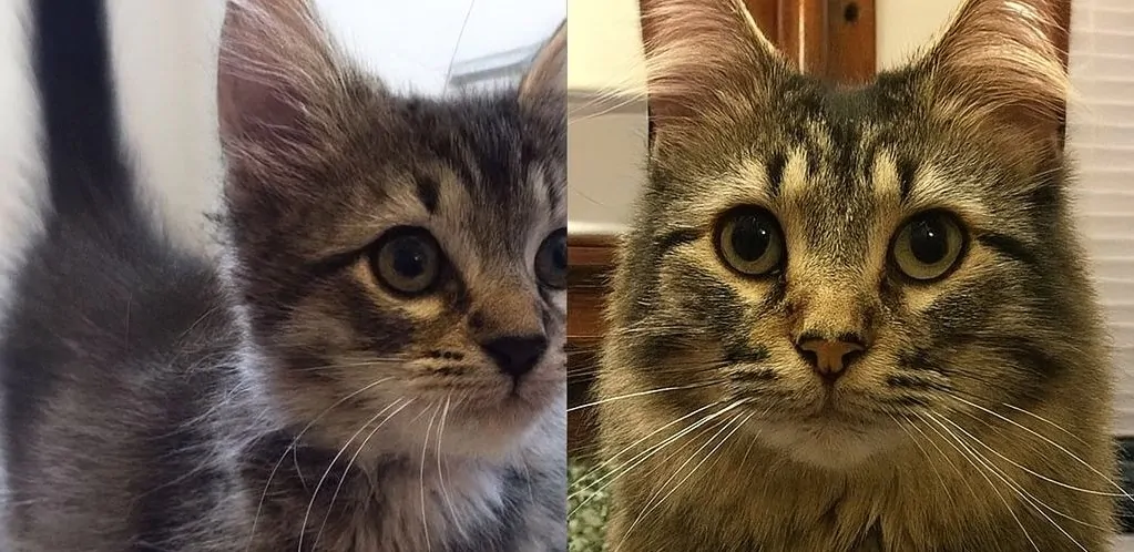 Accanto alle immagini del passato, che mostrano Marley ancora cucciolo poco prima della scomparsa, oggi c’è la sua foto attuale: più maturo, con uno sguardo che racconta un lungo viaggio, ma ancora lo stesso micio amato e riconosciuto subito dai suoi umani.