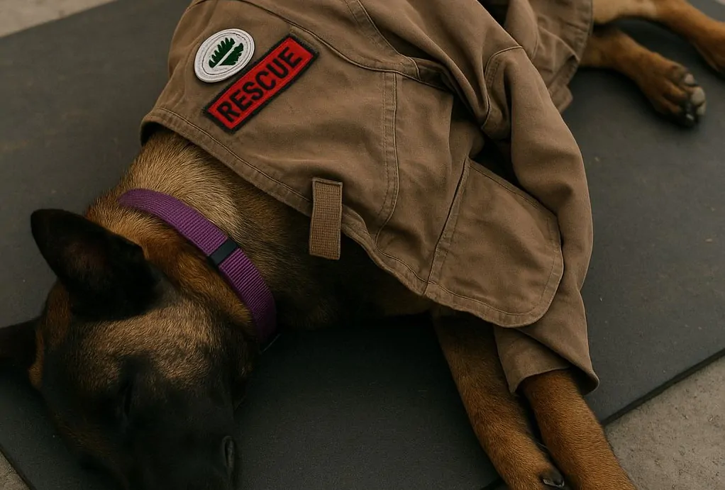 I suoi occhi indagavano ogni anfratto, la lingua penzolava stanca, ma non si fermava mai. Poi, quando anche il corpo ha chiesto tregua, Roko si è lasciato andare. Uno dei soccorritori gli ha steso un tappetino e lo ha coperto con la propria giacca. Lui si è accasciato, ha chiuso gli occhi e ha sospirato, esausto ma sereno. Nessun abbaio, nessun rumore: solo il respiro regolare di chi ha dato tutto.