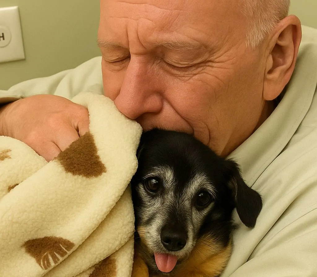Il papà umano ha fatto ciò che solo chi ama davvero può fare: lasciare andare. In quell’ultimo istante non c’è stato silenzio né solitudine, ma carezze, parole dolci e un abbraccio che ha accompagnato l’ultimo battito. Non era una fine, ma un passaggio pieno d’amore, un saluto che profumava di casa.