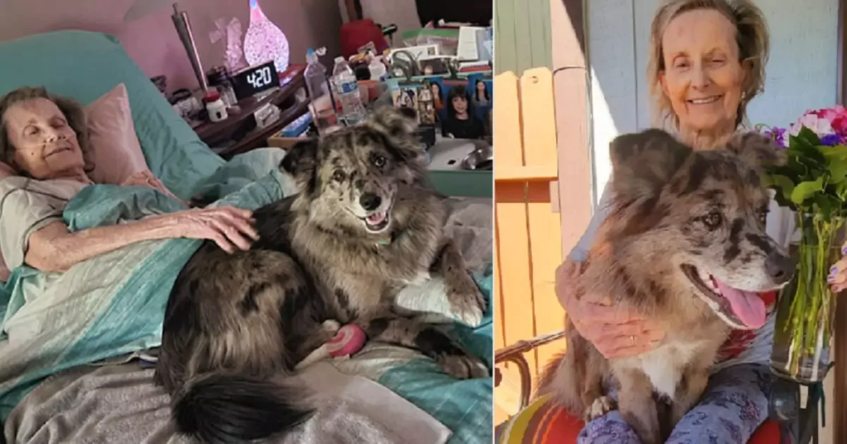 Un dolce incrocio tra Australian Shepherd e Shiba Inu porta di nuovo la felicità nella vita di una signora anziana che aveva perso tutto.