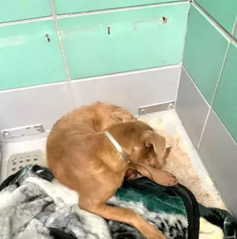 Quando Scarlett è arrivata al rifugio, pesava appena la metà di quanto avrebbe dovuto. Era un mix di Labrador retriever, bellissima ma profondamente spaventata. Si rannicchiava in un angolo, rifiutava il cibo e ogni carezza la faceva sussultare. Gli operatori capirono subito che dietro a quello sguardo impaurito si nascondeva un passato di dolore. Non si sapeva da dove venisse, ma era chiaro che qualcuno le aveva fatto del male.