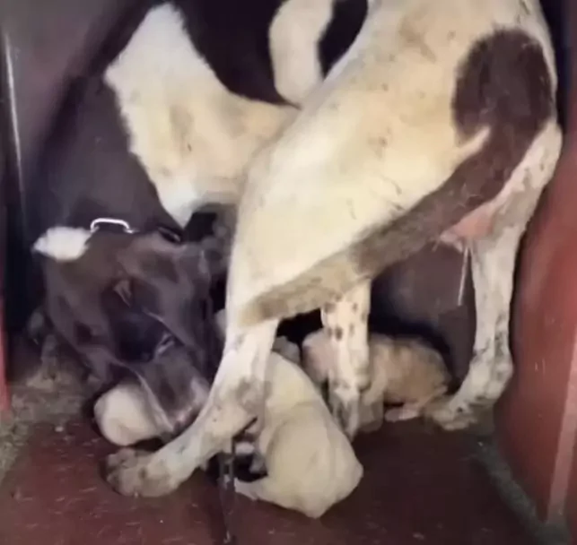 A rendere la storia ancora più dolorosa è il fatto che questa mamma non fosse del tutto sola al mondo: aveva un proprietario, ma un uomo privo di cuore. Invece di offrirle un riparo caldo, l’ha lasciata legata sotto la pioggia, condannandola a un destino crudele insieme ai suoi cuccioli.