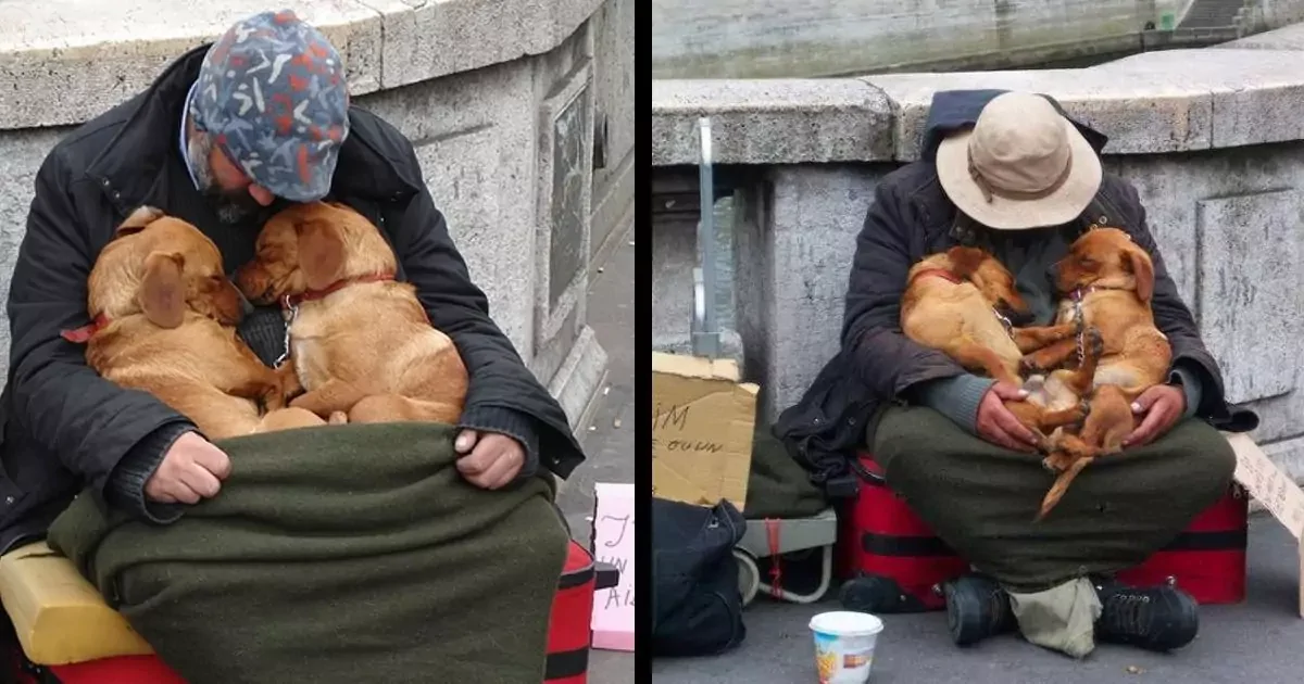 Mentre i passanti lo ignoravano, quei due cani lo avevano visto davvero. In quel gesto silenzioso, semplice ma profondamente umano, hanno colmato il vuoto che la società spesso lascia nelle vite di chi vive ai margini.
