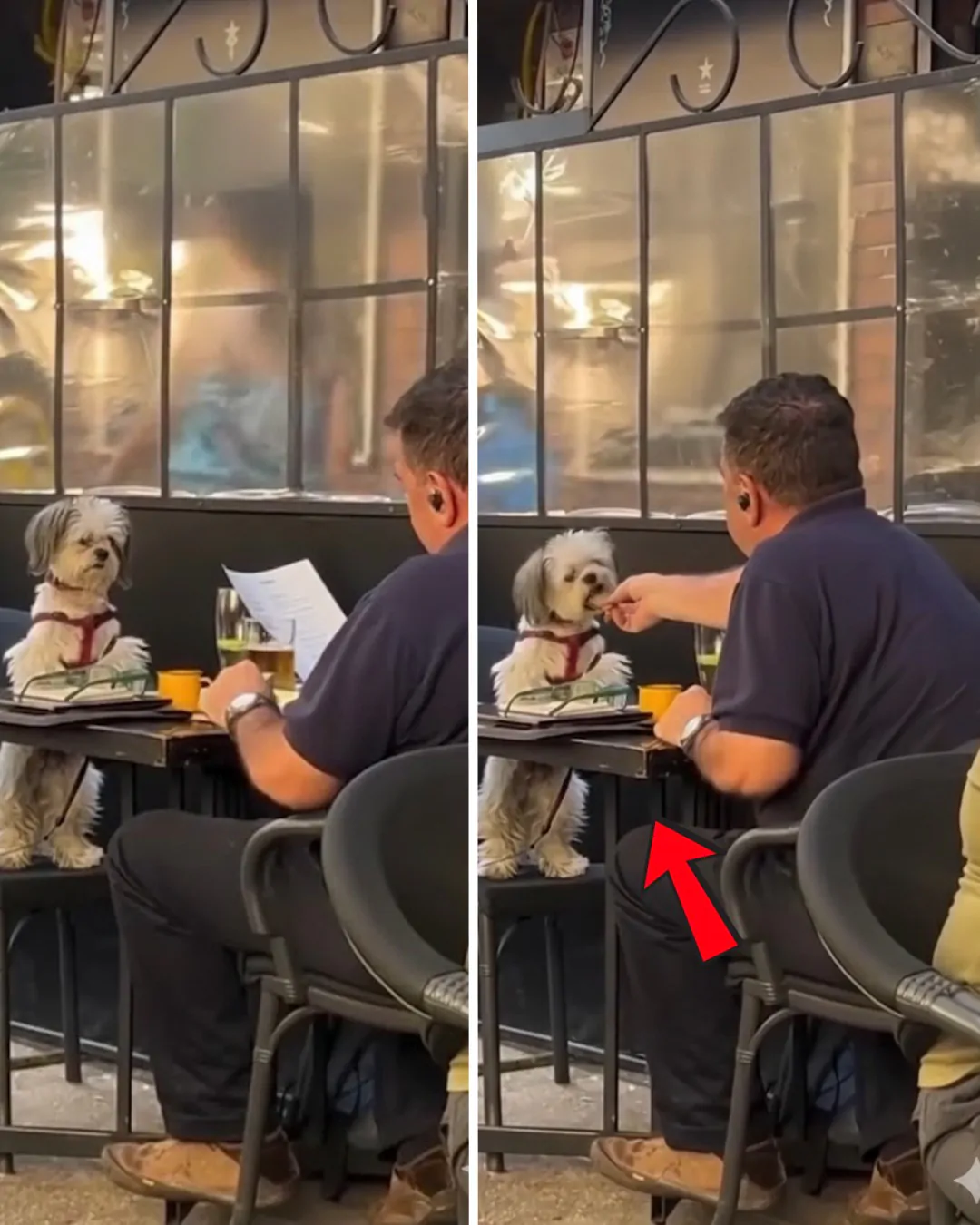Il cagnolino, seduto composto di fronte a lui, lo guardava negli occhi con quella luce pura che solo gli animali sanno avere. Lui gli parlava sottovoce, con tono affettuoso, come se tra i due esistesse un linguaggio segreto fatto di piccoli gesti, di respiri e silenzi condivisi. Gli porgeva qualche assaggio dal piatto, con la stessa cura con cui si serve un amico.