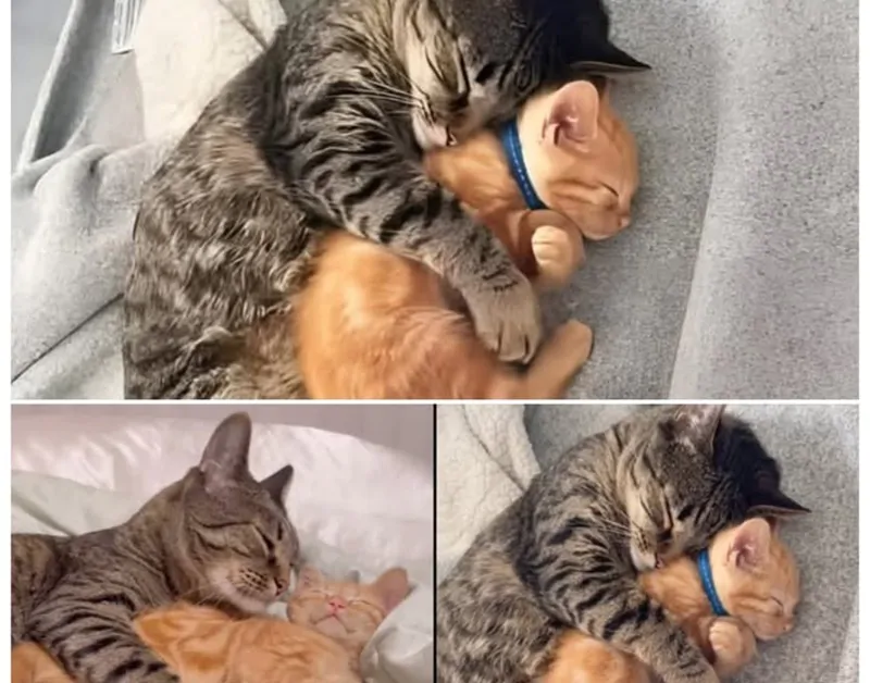 Da quel momento Toby non lo ha più lasciato. In silenzio sembrava dirgli: “Finché ci sono io, tu sei al sicuro. Sei amato. Non sarai mai più solo.” Ogni sonno condiviso, ogni miagolio di risposta, ogni momento passato insieme ha rafforzato quel legame. La foto dei due gatti che dormono abbracciati è molto più di un’immagine tenera: è la testimonianza di come anche le creature più piccole possano salvarsi a vicenda. Milo ha trovato il suo coraggio, Toby ha trovato il suo compito. Due storie difficili si sono trasformate in una sola storia di guarigione, amicizia e rinascita.