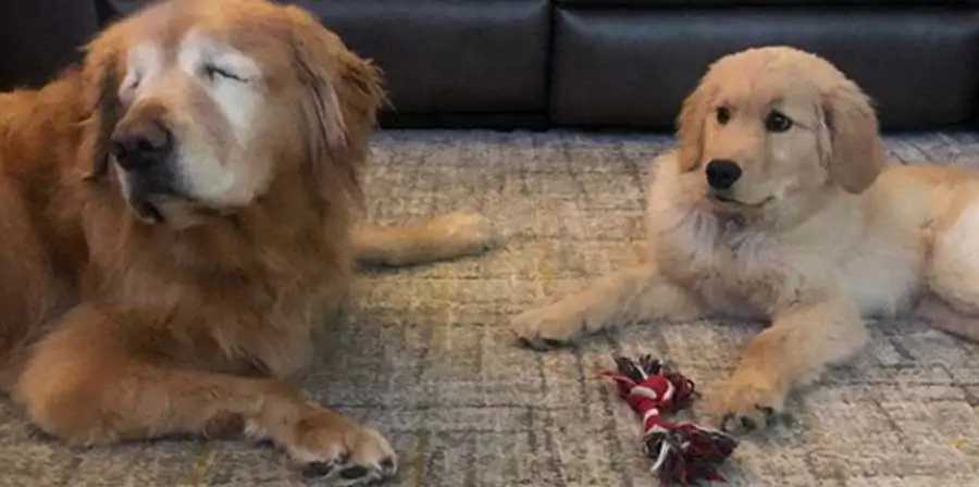 Dal North Carolina, negli Stati Uniti, arriva la storia di due Golden Retriever: un cucciolo che accompagna e guida un cane di 11 anni rimasto cieco a causa di una grave malattia.