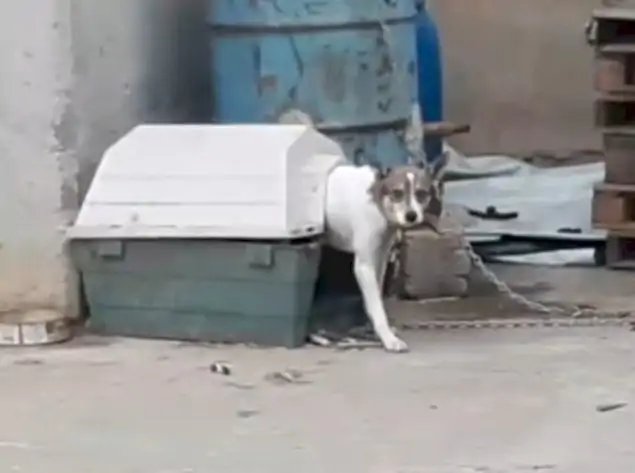 Il proprietario è partito per le ferie lasciando il cane rinchiuso in un box, legato a una catena e privo di cibo e acqua. È la condizione in cui è stato ritrovato un cucciolo meticcio di piccola taglia, rimasto solo per settimane senza alcuna assistenza.