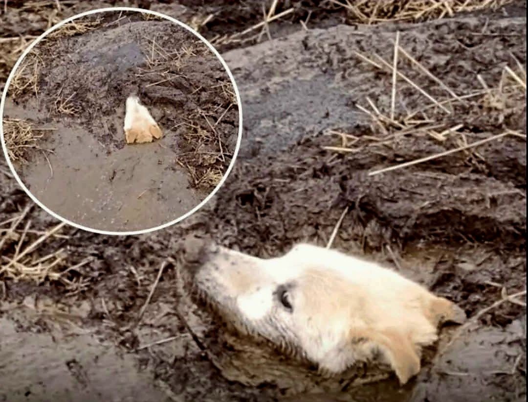 Un cane era rimasto intrappolato nella melma densa della palude. Solo la testa emergeva dal fango, mentre il resto del corpo era completamente bloccato. Gli occhi dell’animale mostravano paura e sofferenza, e ogni movimento sembrava inutile. Il terreno instabile rendeva impossibile avvicinarsi senza correre il rischio di restare a propria volta intrappolati.