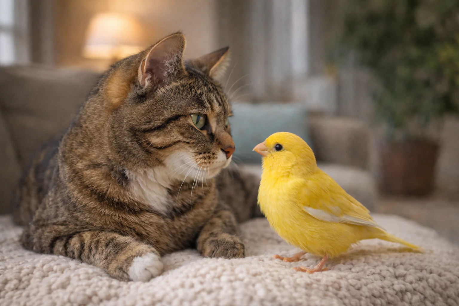 Una storia di amicizia tra un gatto e un canarino osservata in Toscana, documentata nel tempo attraverso comportamenti quotidiani, routine condivise e testimonianze dirette dei proprietari.