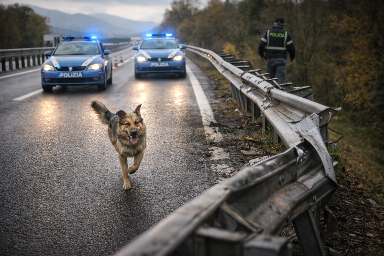 La carreggiata viene messa in sicurezza. Il guardrail viene segnalato e successivamente riparato. Il cane viene accompagnato fuori dall’autostrada, lontano dal traffico. Viene controllato: nessuna ferita evidente. Gli agenti cercano un eventuale proprietario nelle ore successive.