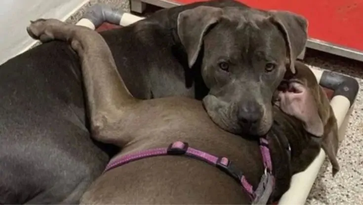 Davanti a noi c’erano due sorelle Pitbull dal mantello grigio-blu, arrivate insieme dopo essere state abbandonate come se non avessero alcun valore, senza un nome, senza una storia, senza un passato che qualcuno avesse ritenuto degno di essere raccontato.