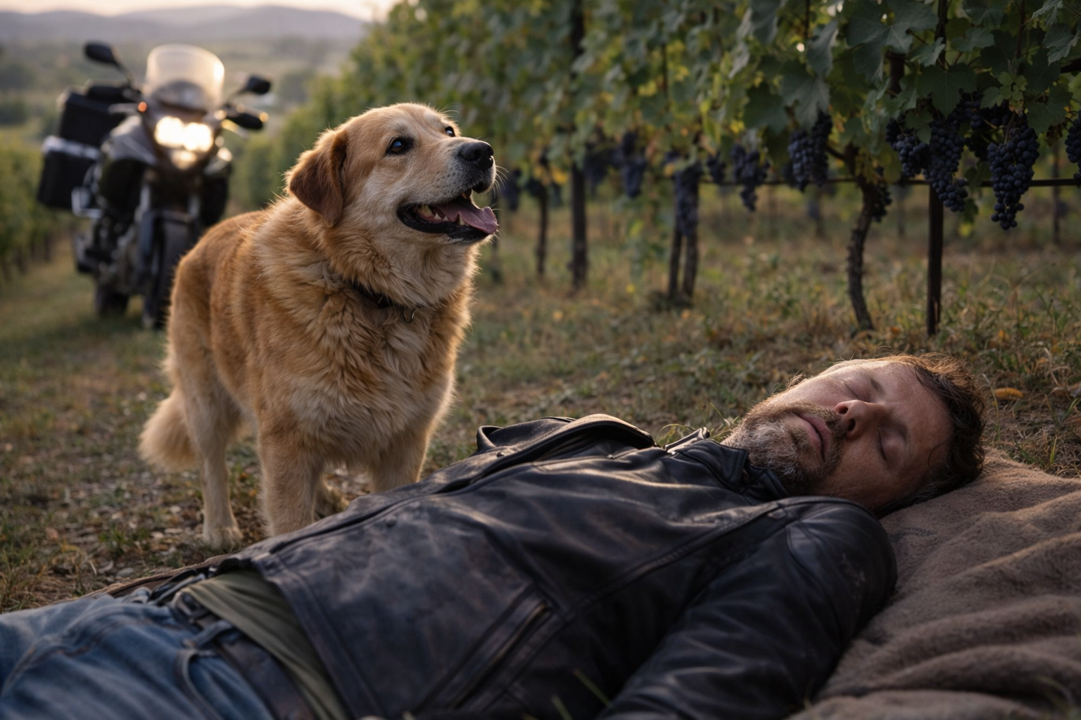 Un cane ferma una moto e insiste. Il suo comportamento porta alla scoperta di un uomo svenuto tra le vigne, salvato grazie a un segnale ignorato solo per pochi istanti.