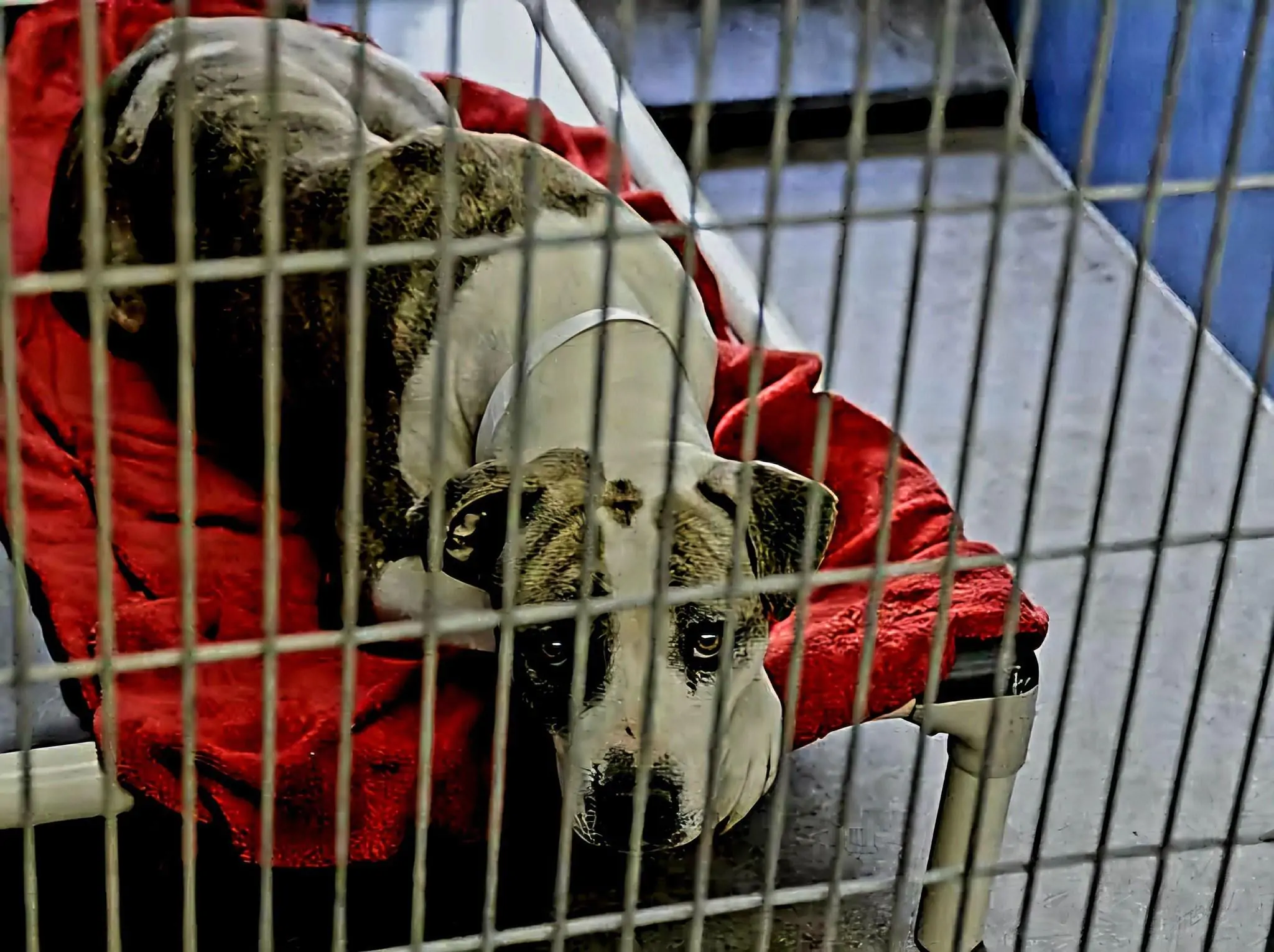 All’interno del rifugio, il cane si adagia sulla sua coperta rossa preferita, mentre il corpo appare indebolito e lo sguardo si fa pesante, segnato dall’età e da un cambiamento improvviso che non riesce a comprendere.