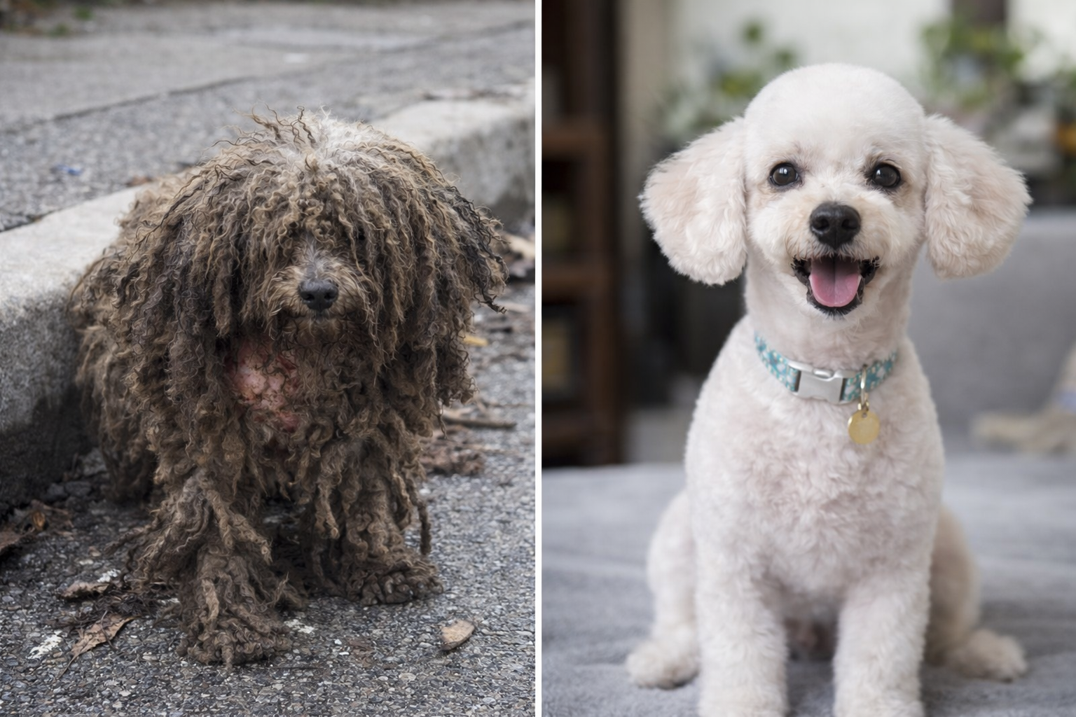 Un barboncino trovato solo e coperto di pelo infeltrito viene salvato da volontari. Dopo cure e affetto, il cane ritrova fiducia, serenità e una nuova vita.
