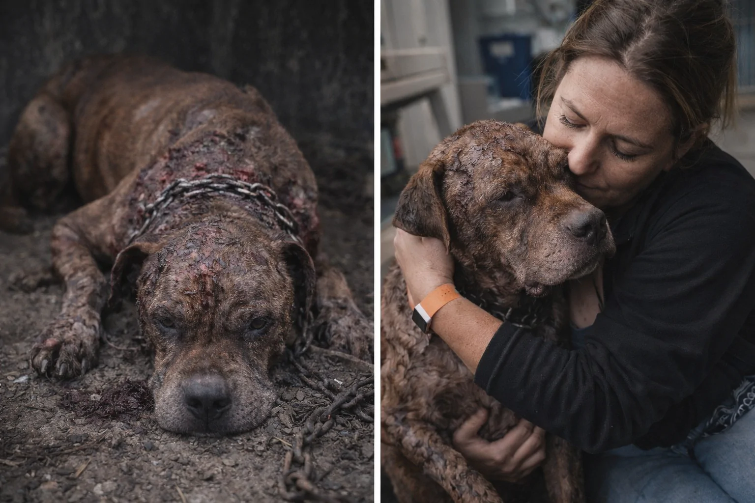 Bruno ha vissuto anni di violenze e incuria. Ferite infestate e cure improvvisate lo stavano uccidendo. Salvato in extremis, oggi lotta in clinica veterinaria.
