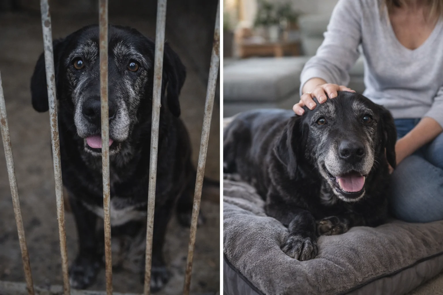 Un giorno, davanti al box, si è fermata una donna anziana. Si è avvicinata con calma, senza fretta, e si è chinata all’altezza della cagnolina. I loro sguardi si sono incrociati. Occhi stanchi, ma ancora gentili. La cagnolina si è avvicinata lentamente e ha poggiato il muso sulle sbarre, come se avesse riconosciuto qualcosa. La donna ha parlato a bassa voce: “Lei ha bisogno di una casa tranquilla… proprio come la mia”. Quel giorno la cagnolina è uscita dal rifugio. Non correva, non saltava. Camminava con passo lento, ma sicuro. Oggi dorme su un cuscino morbido, scaldata dal sole che entra dalle finestre. Le mani che la accarezzano non hanno fretta. La sua vita è fatta di silenzi pieni d’amore e gesti gentili. È stata lasciata a dodici anni, ma la sua storia non si è conclusa lì. A volte la seconda possibilità non serve a ricominciare, ma a permettere a una vita di continuare nel modo più sereno possibile.