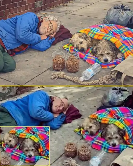 Un uomo senza casa trascorre le giornate sul marciapiede con i suoi cani, Buddy e Willow, proteggendoli dal freddo con coperte e gesti silenziosi che raccontano cura e dignità.