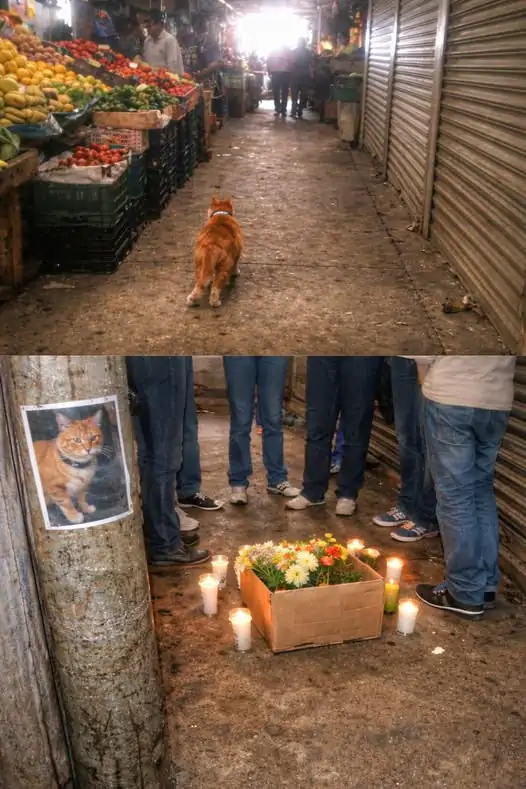 Uno alla volta, venditori e lavoratori del mercato si sono avvicinati per salutare il gatto che aveva condiviso con loro anni di presenza quotidiana. Il gesto è stato descritto da chi ha assistito alla scena come un momento spontaneo e collettivo.