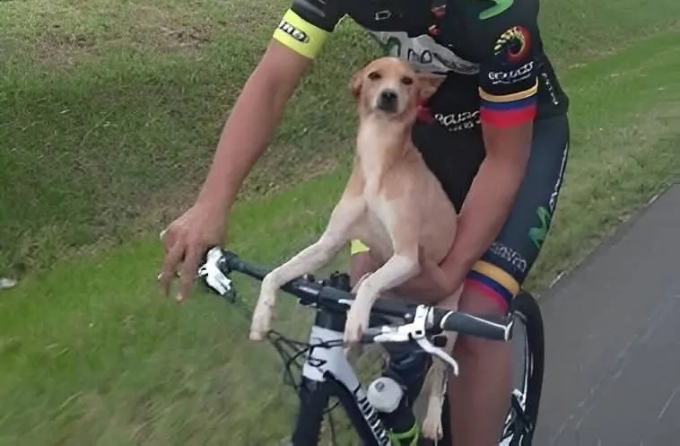 In assenza di mezzi alternativi, il cane è stato trasportato in bicicletta, sostenuto con un braccio durante il tragitto. Nonostante le condizioni precarie, l’animale ha mantenuto un comportamento tranquillo, adattandosi progressivamente al contatto umano e alla nuova situazione.