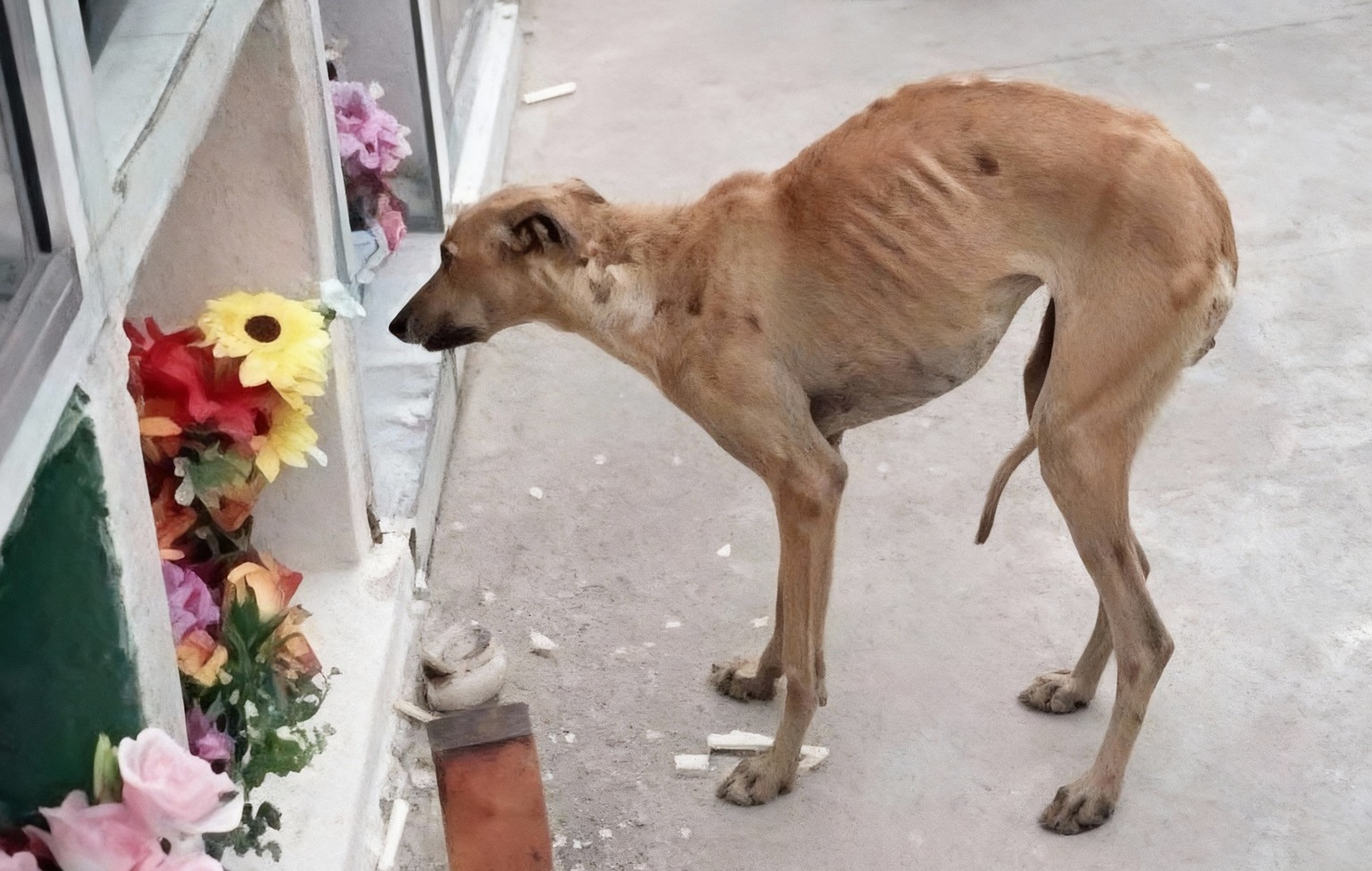 Un cane randagio raggiunge il luogo dell’addio all’uomo che lo nutriva ogni giorno, seguendo solo l’odore e il ricordo di un legame silenzioso.