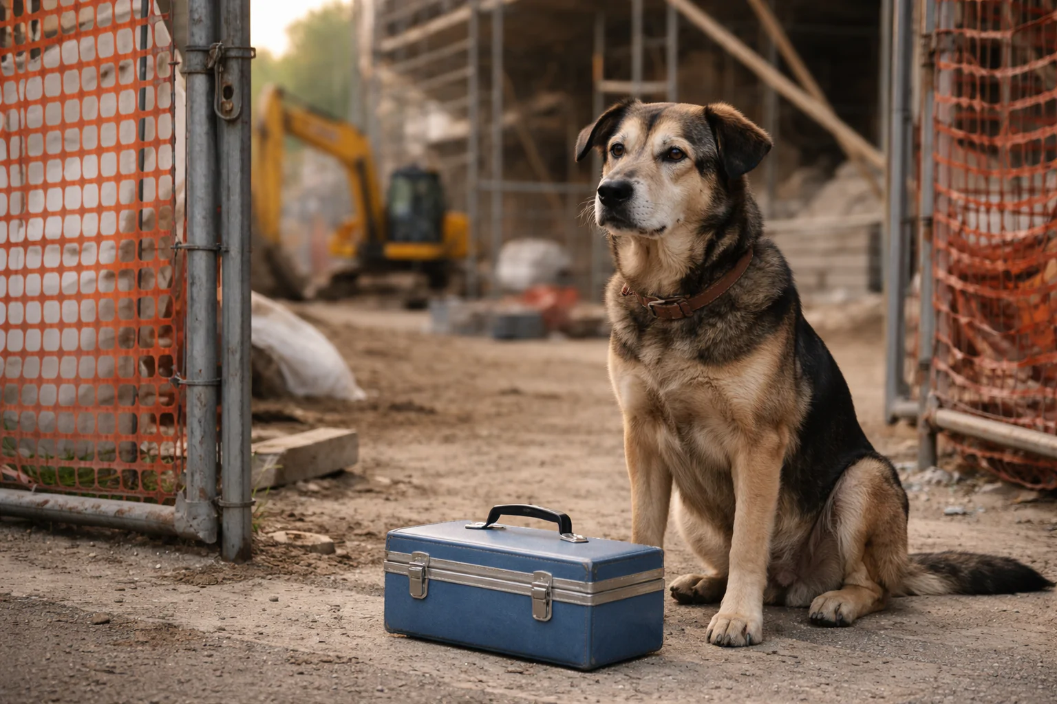 Il tragitto termina davanti al cancello del cantiere dove lavorava Luca a Bari. Arrivato lì, Rocky si siede. Appoggia la cassetta a terra e resta immobile, con lo sguardo fisso verso l’interno, come se attendesse l’inizio della giornata lavorativa.