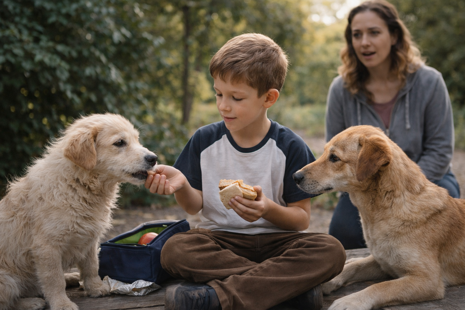 Una madre scopre che il figlio divide ogni giorno il pranzo con due cani randagi. Il motivo del bambino sorprende tutti.