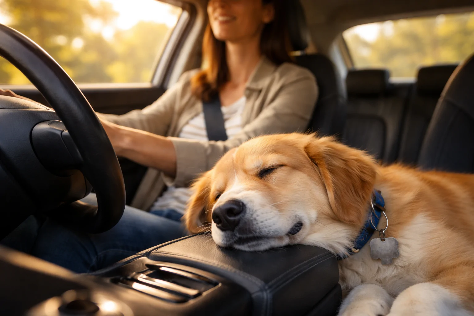 Dopo pochi minuti, Sara ha salutato e si è diretta verso l’auto. La cucciola, però, l’ha seguita senza indugio. È salita sul sedile e si è sistemata vicino al suo collo, trovando una posizione comoda e rimanendo immobile.
