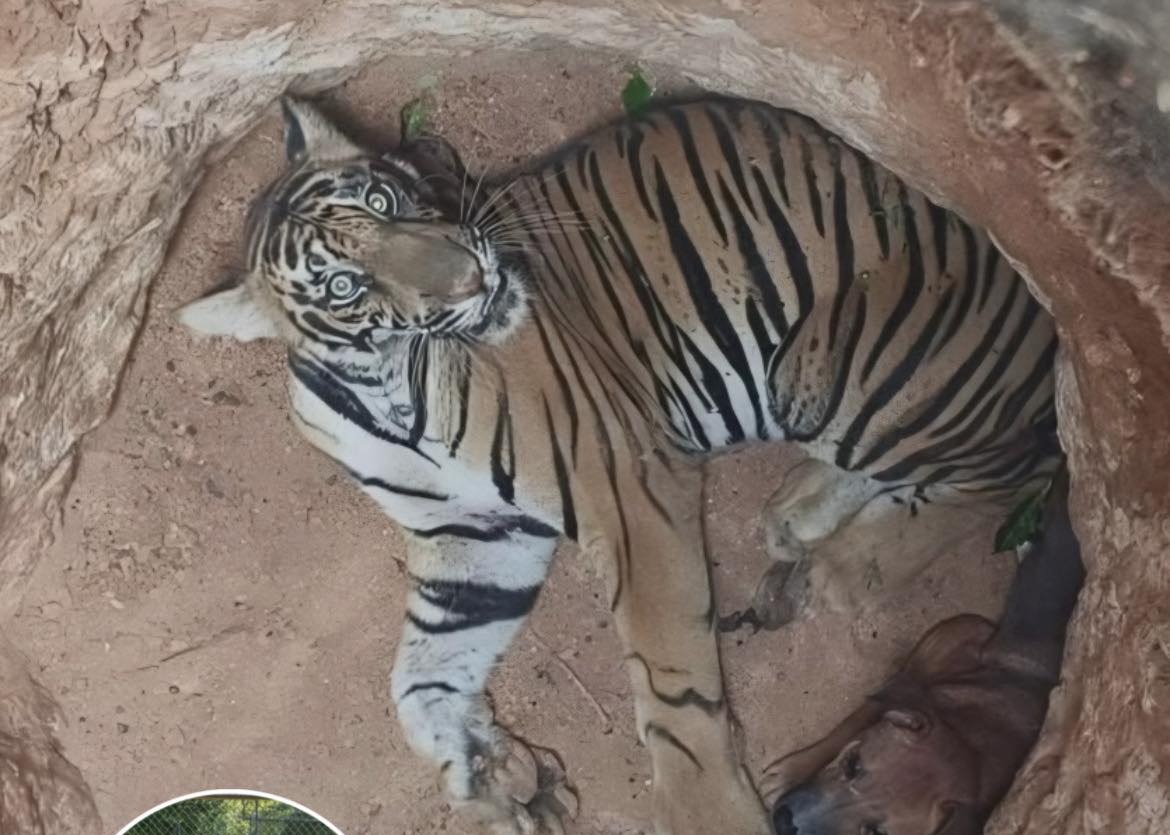 In India una tigre e un cane restano intrappolati per giorni in un pozzo. Nessuna aggressione: quando vengono salvati, rifiutano di separarsi.