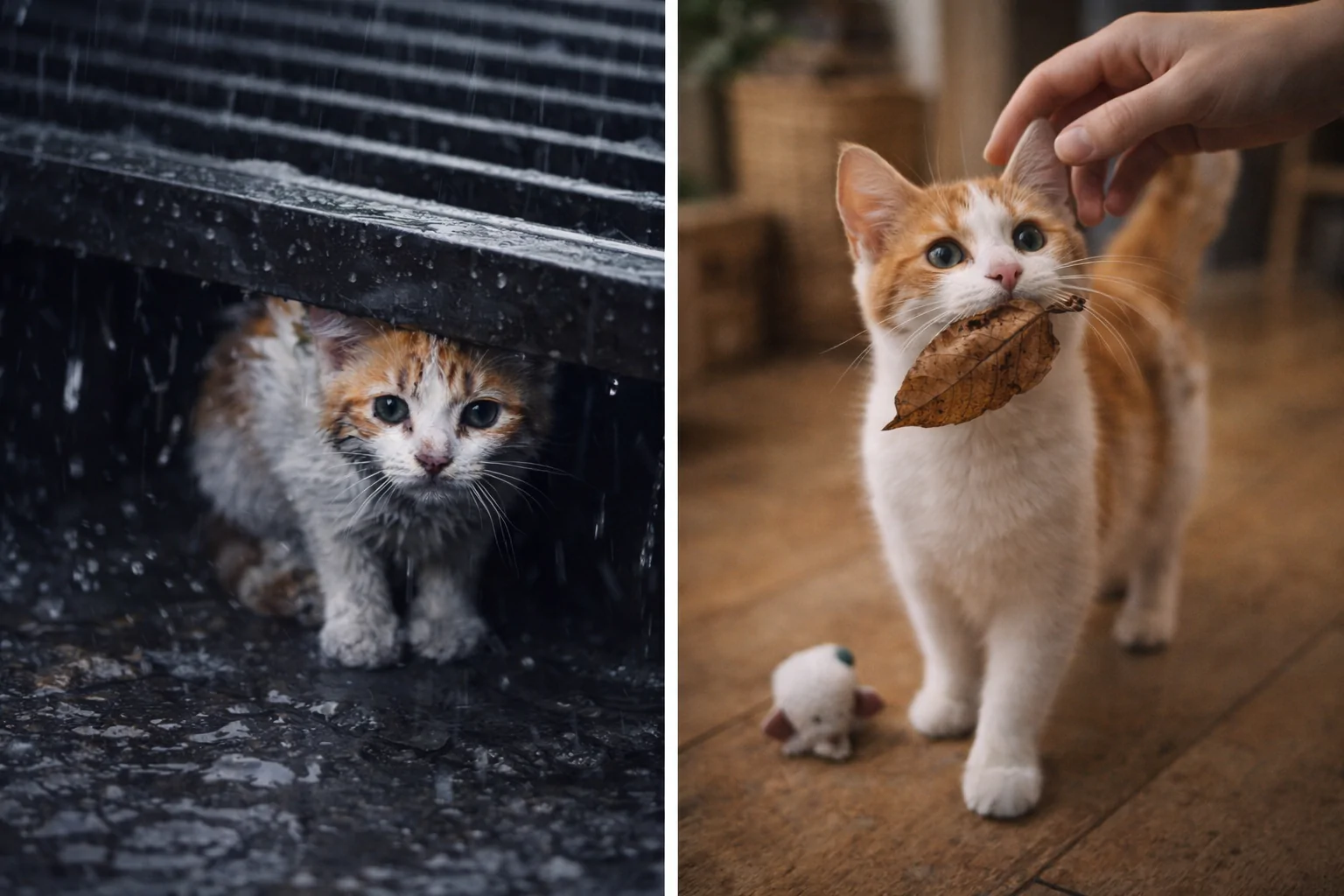 Da quel giorno sotto la pioggia, il piccolo gattino salvato dalla grata è diventato un adulto sicuro e attivo, mantenendo un comportamento che riflette sia il suo istinto naturale sia il legame con l’ambiente domestico.