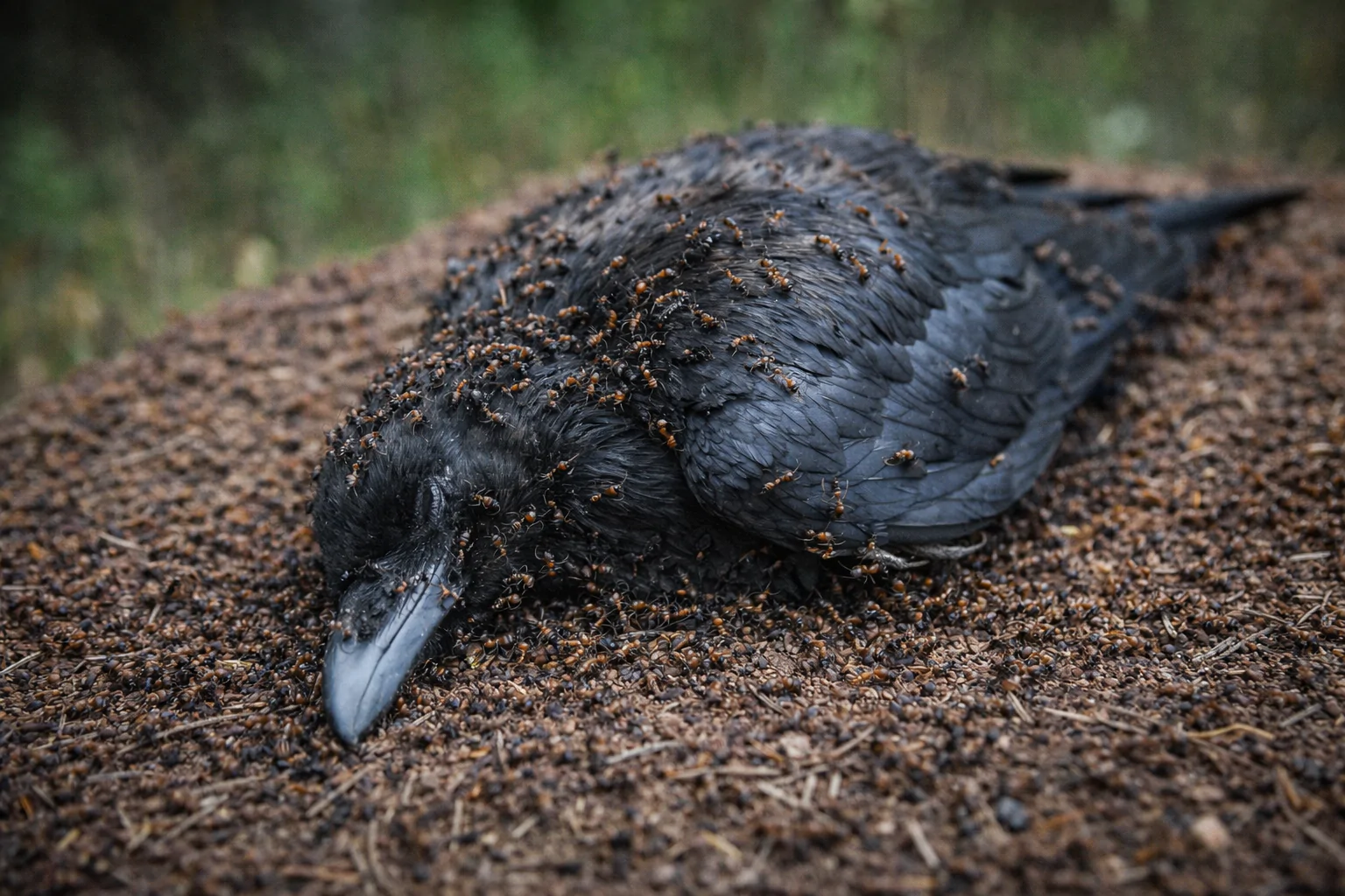 Un corvo rimasto immobile su un formicaio ha attirato l’attenzione di alcuni passanti: gli esperti hanno spiegato che si trattava di una cura naturale contro parassiti.
