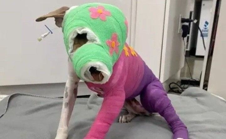 Le bende colorate che oggi indossa non nascondono le ferite, ma proteggono le aree ancora in fase di guarigione. La scelta di materiali più vivaci è stata fatta per rendere meno traumatico il periodo di convalescenza e facilitarne la gestione quotidiana.