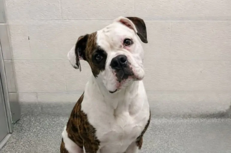 Bella, Boxer bianca di 5 anni, viene riportata al rifugio perché cercava il contatto notturno…