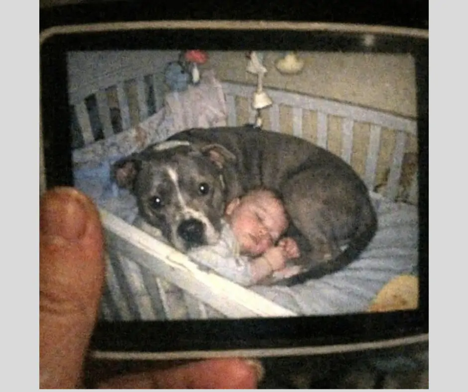 Le immagini, registrate dal baby monitor, mostravano il suo cane Ranger, un pitbull meticcio, entrare nel lettino del piccolo Eli, otto mesi, durante la notte. Nel video il cane si rannicchiava accanto al bambino, che smetteva di piangere dopo pochi secondi.