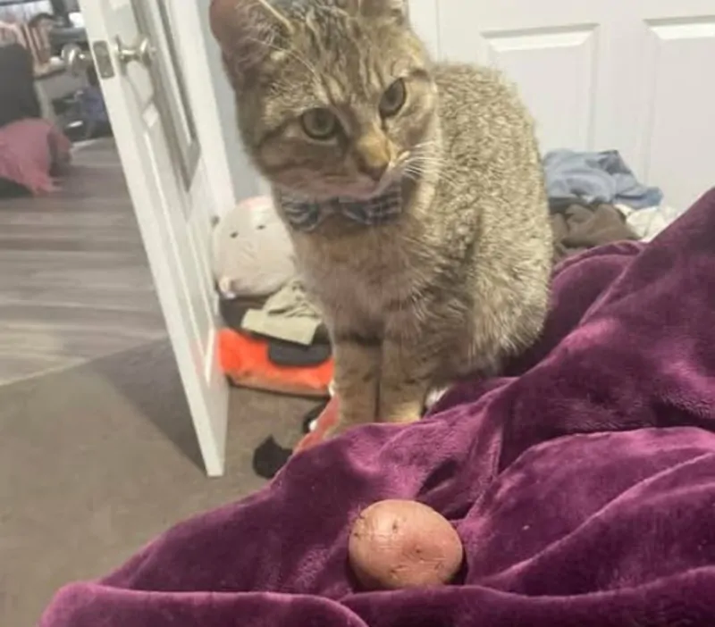 Alle 23 in punto un gatto entra in camera, salta sul letto e lascia in grembo alla sua proprietaria una patata cruda intera.
