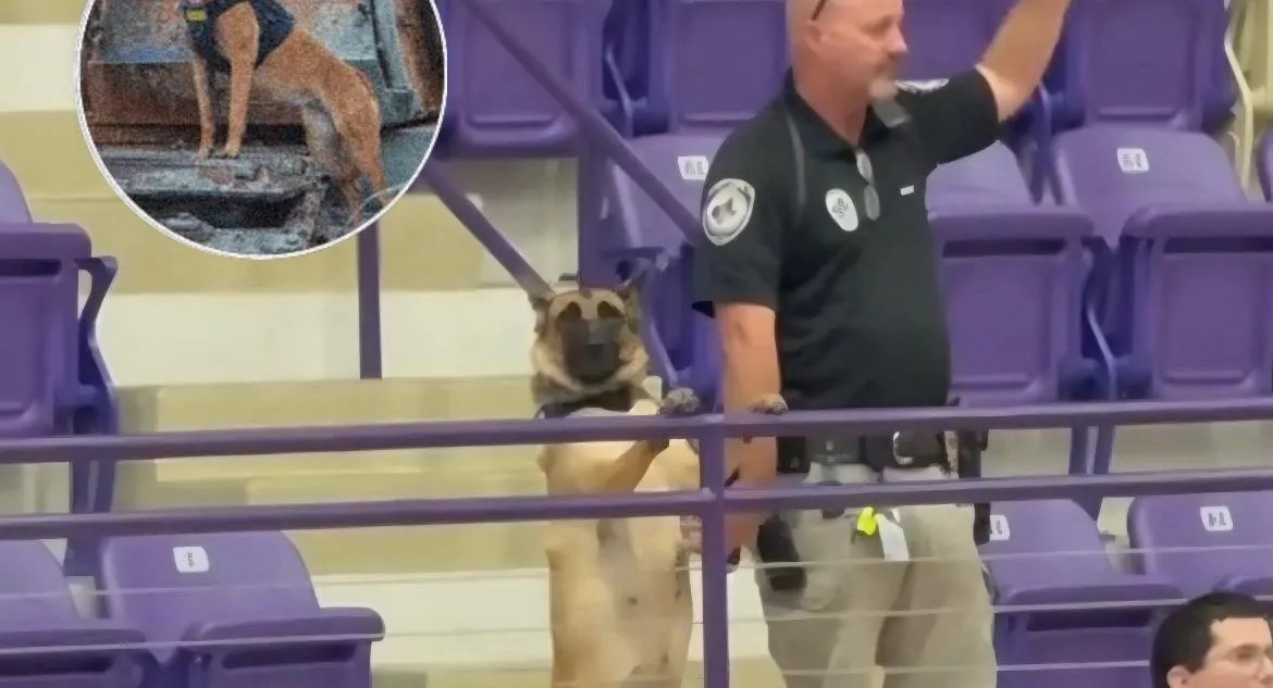 In pochi minuti la percezione di quel cane cambiò completamente: da presenza curiosa a simbolo di un passato di servizio e dedizione, capace di suscitare rispetto anche tra adolescenti distratti dall’atmosfera sportiva.