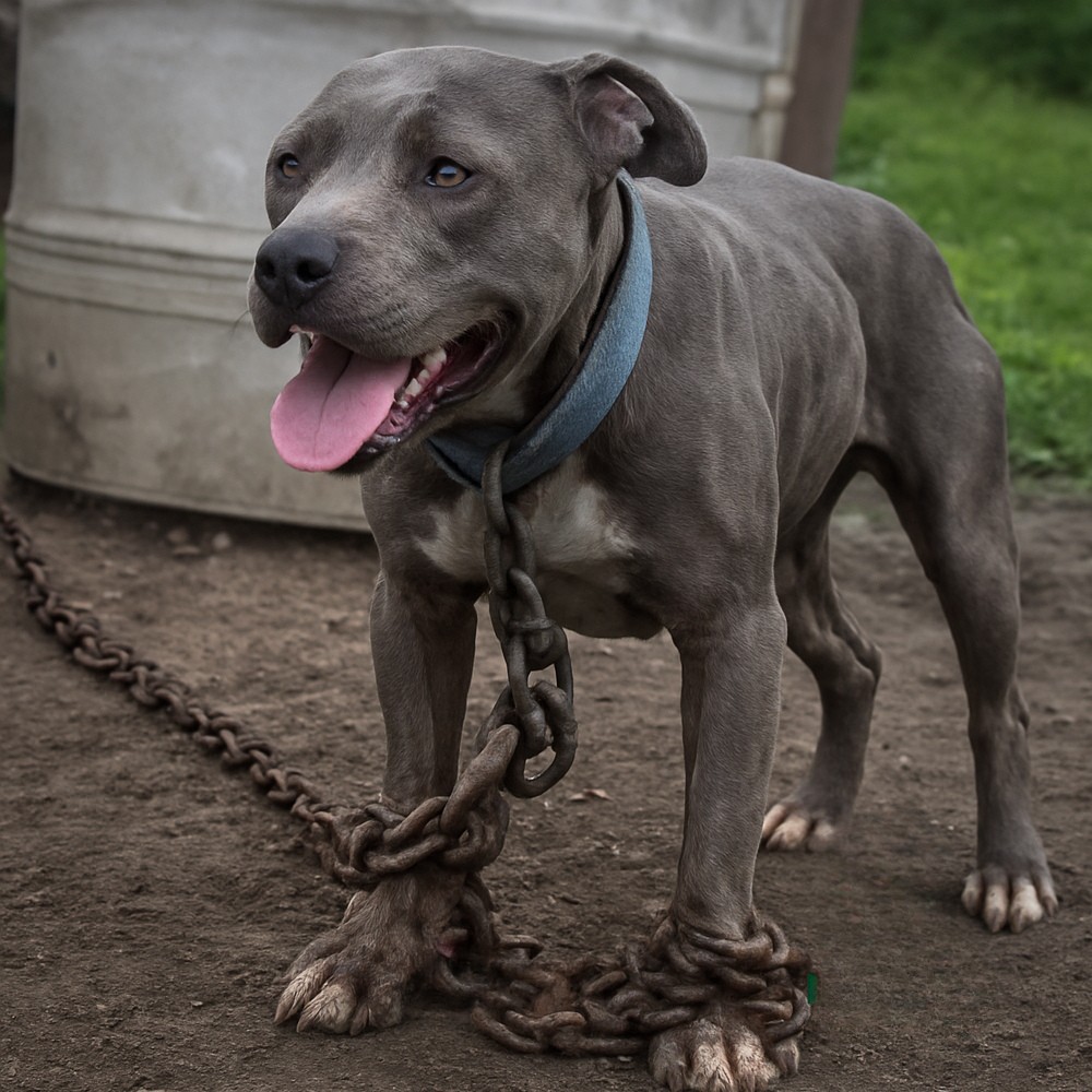 Non conosceva carezze né libertà, ma solo il rumore metallico di una catena arrugginita che lo accompagnava giorno e notte, legata al collo con un peso così spesso e pesante da sembrare una condanna permanente, mentre attorno a lui altri cani correvano liberi e lui poteva muoversi solo entro pochi metri di terreno spoglio.