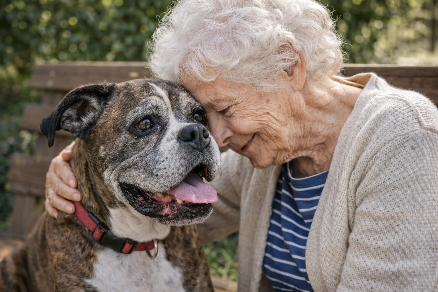 Dopo la perdita del suo cane, Maria, 89 anni, accoglie un Boxer di 12 anni rimasto solo. Oggi vivono insieme, trovando conforto reciproco ogni giorno.