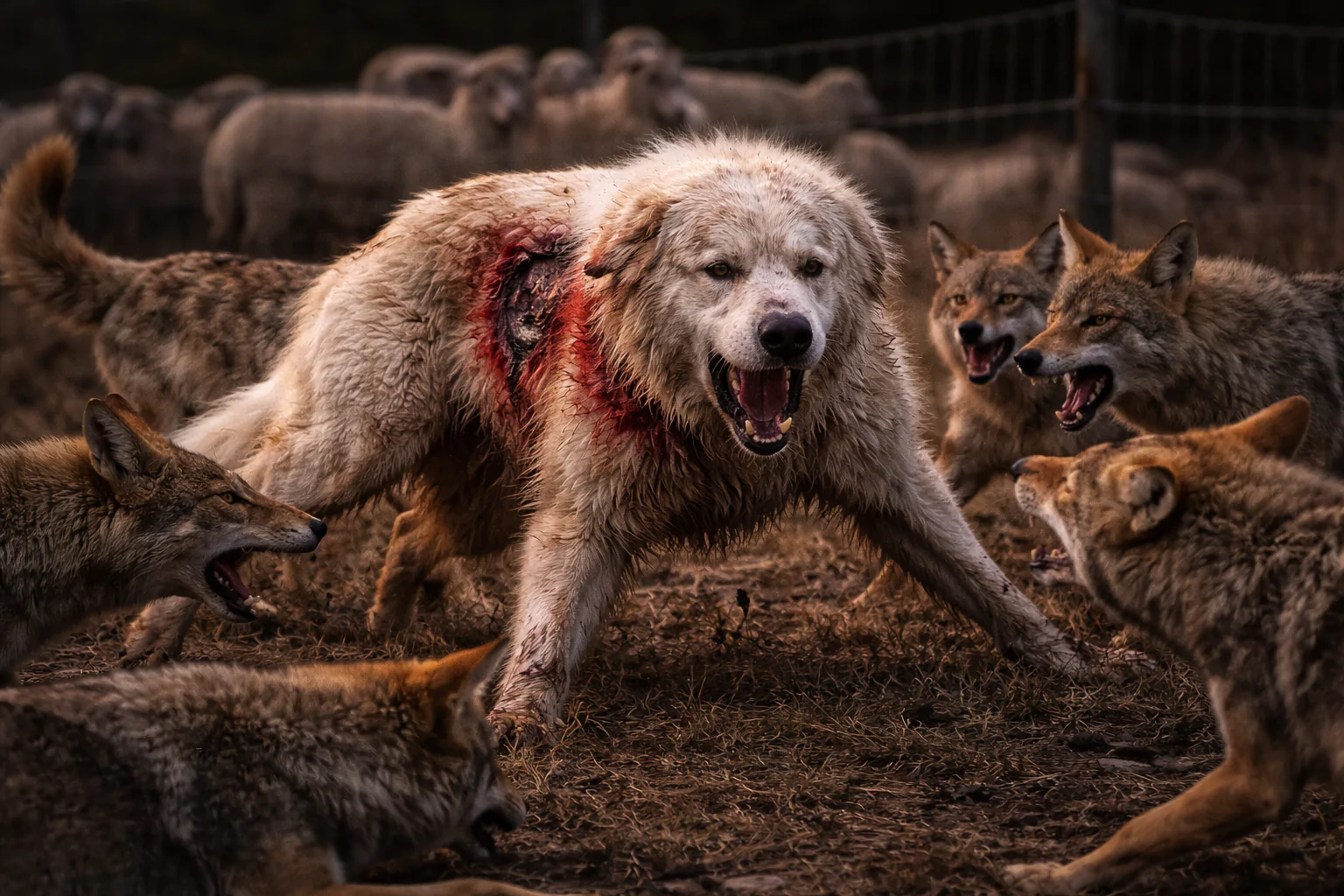 La battaglia tra Casper e i coyote durò quasi trenta minuti. Il cane affrontò i predatori uno dopo l’altro, cercando di tenerli lontani dal gregge.