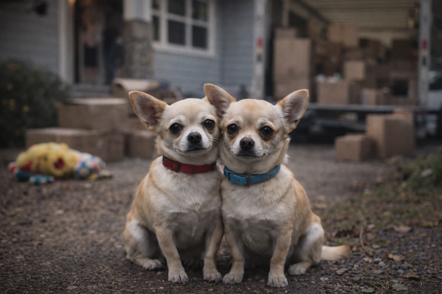 I due Chihuahua sono stati lasciati fuori, improvvisamente separati dalla vita domestica che avevano sempre conosciuto.