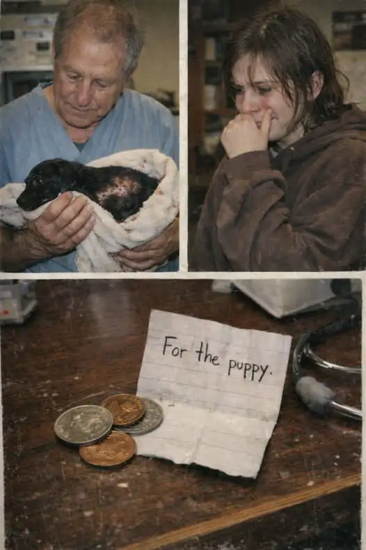 Accanto al cucciolo c’erano tre monete e un piccolo foglio piegato. Il veterinario lo aprì e lesse una frase scritta con una calligrafia incerta: “Ho venduto il mio pranzo per salvarlo”.