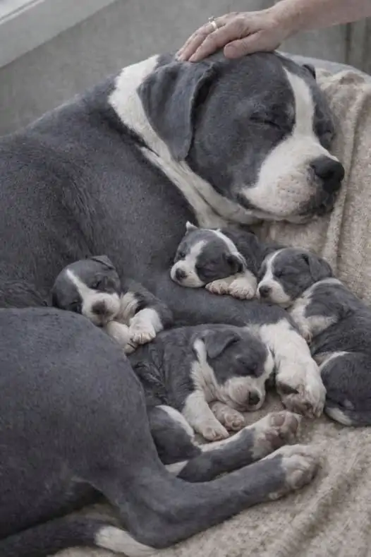 In fondo alla gabbia, sulla brandina, due pitbull dal mantello blu-grigio erano raggomitolati uno accanto all’altra.