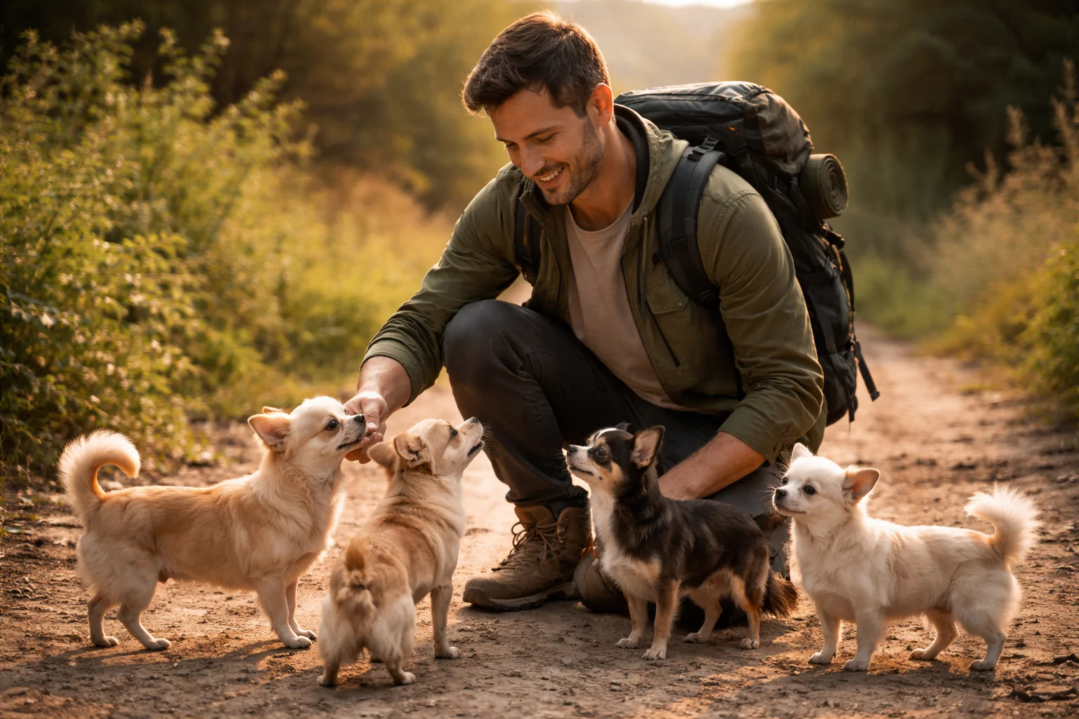 Dal sentiero, uno dopo l’altro, comparvero altri quattro chihuahua. Arrivavano lentamente, come se stessero seguendo lo stesso percorso.