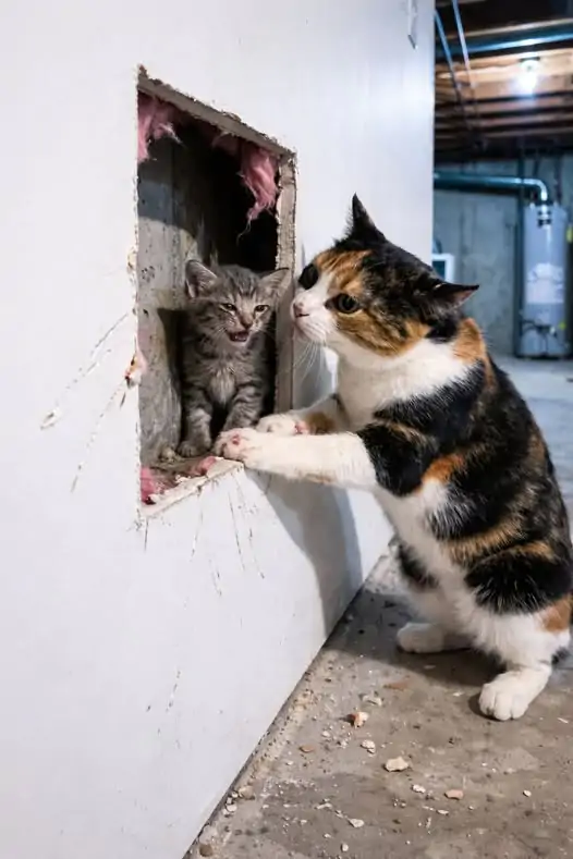 La gatta Luna miagola undici giorni davanti al muro del seminterrato finché la famiglia scopre un gattino intrappolato. Il piccolo Milo viene salvato e sopravvive.