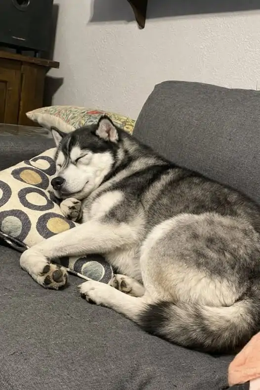 Il Husky dorme ogni notte accanto al letto di Marco, disteso sul pavimento come un guardiano silenzioso.